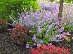 a deep pink flowers; and the Goldmound is grown primarily for its